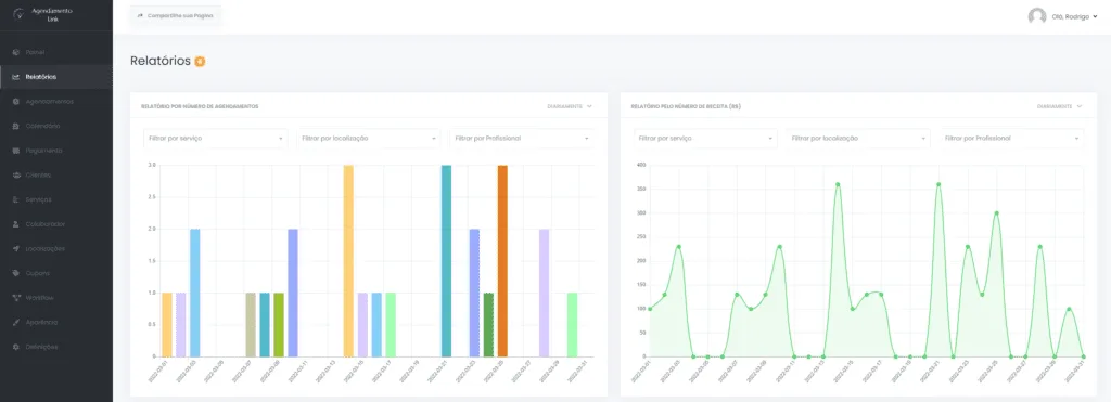 A integração com o Zoom é o principal recurso que permite que empresas de consultoria criem reuniões virtuais por meio do sistema. O painel de controle disponibiliza informações sobre o número de eventos agendados por local, serviço e funcionário. Você pode comparar os dados e tomar melhores decisões comerciais com base nos resultados.