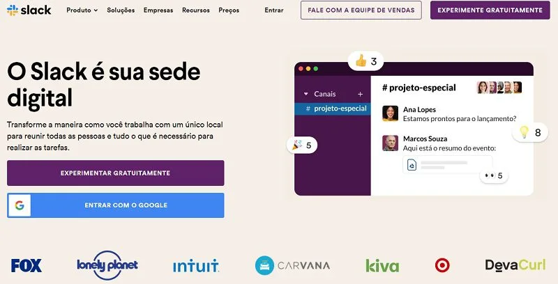 Ainda que o e-mail permaneça sendo o canal preferido de comunicação com o cliente, você pode reduzir sua utilização entre a equipe. Quando começou a operar, o Slack promoveu sua proposta de venda exclusiva como e-mails reduzidos nas equipes. Agora, ele lida com milhares de tarefas para equipes ágeis, gerentes de produto, startups e grandes empresas.