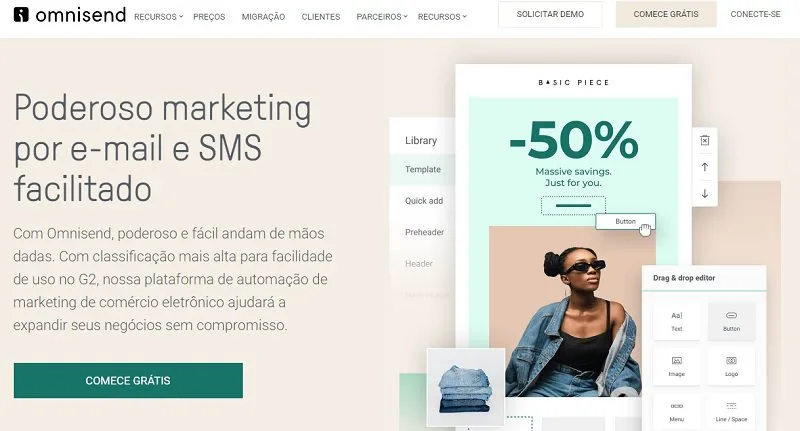Omnisend é uma das melhores ferramentas de marketing para automatizar suas relações comerciais. A plataforma omnichannel é especificamente voltada a capacitar o e-commerce a potencializar seus diferentes canais de marketing e maximizar as vendas. Ela é totalmente integrado com Shopify, WooCommerce e outras plataformas de e-commerce nas quais você pode rastrear os dados dos consumidores. A ferramenta sincroniza de maneira dinâmica os dados do cliente no Facebook e Google para uma experiência prática de anúncios.