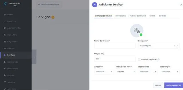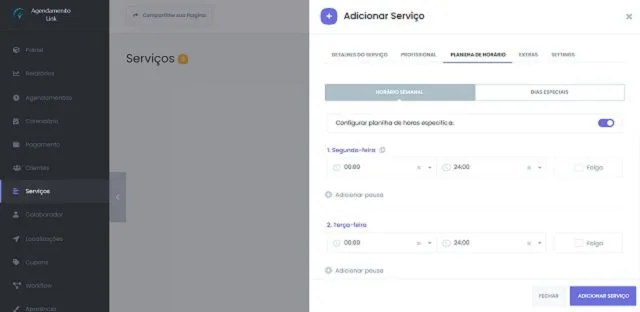 Configurações de Serviços no Agendamento Link