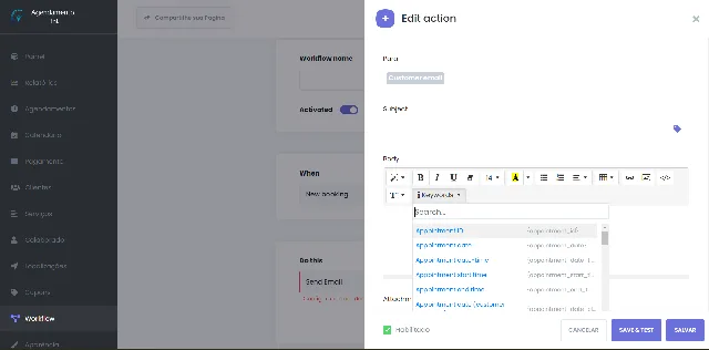 - Lembretes e notificações via e-mail, SMS, WhatsApp, Telegram e Wehbook