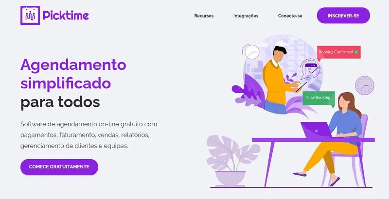 Picktime é um software de agendamento para serviços de limpeza de fácil utilização que trabalha com você para ajudar sua companhia de limpeza a se tornar mais organizada e produtiva. Ele permite que você configure rapidamente seu horário de funcionamento e que seus clientes agendem serviços online, ajudando-o a reduzir a carga de trabalho diária. Essa ferramenta ajudará sua empresa de limpeza doméstica a funcionar de forma mais eficiente. Demora menos de 2 minutos para preparar sua empresa para uma corrida de compromissos.